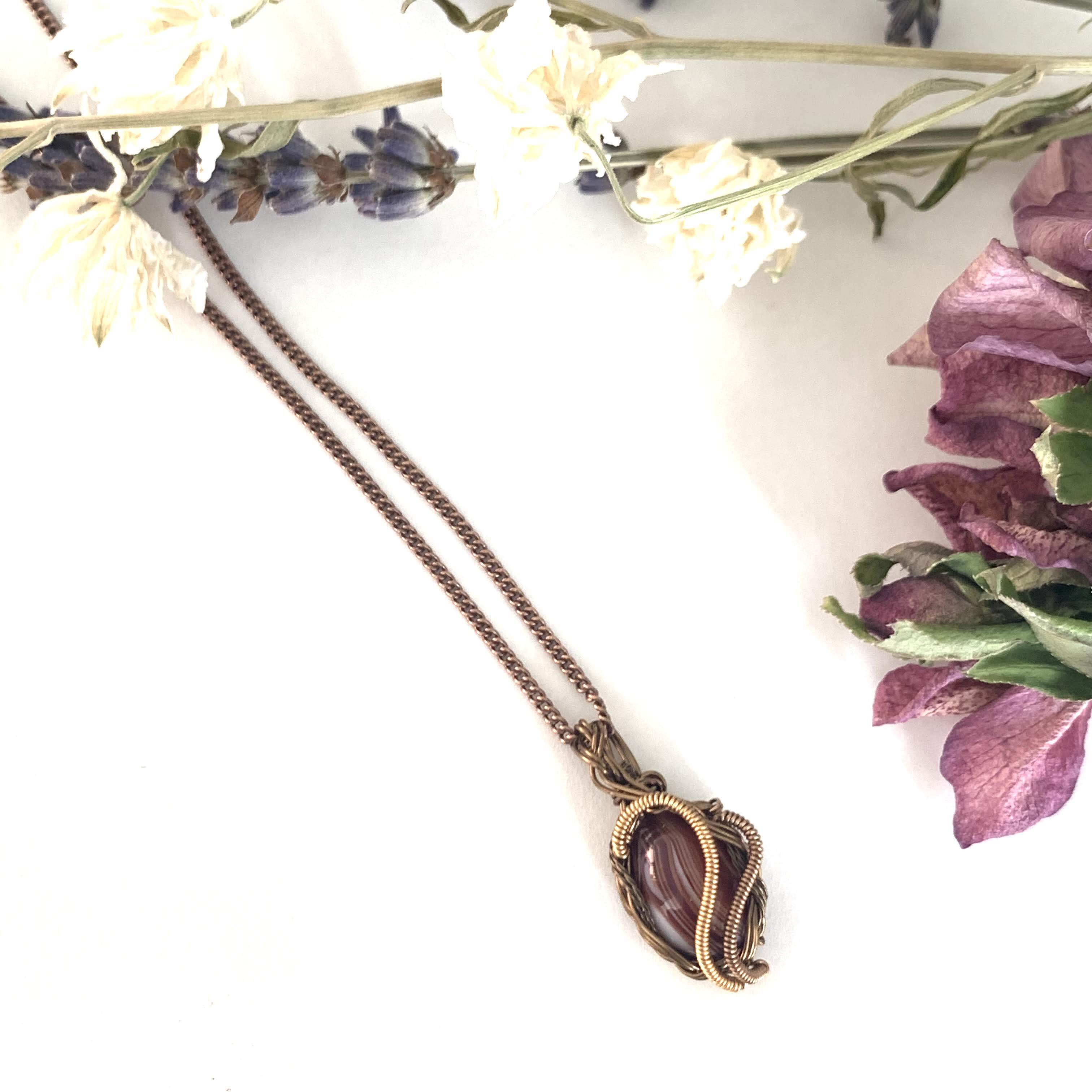 小ぶりなアゲートを使用したワイヤーアートネックレスです。