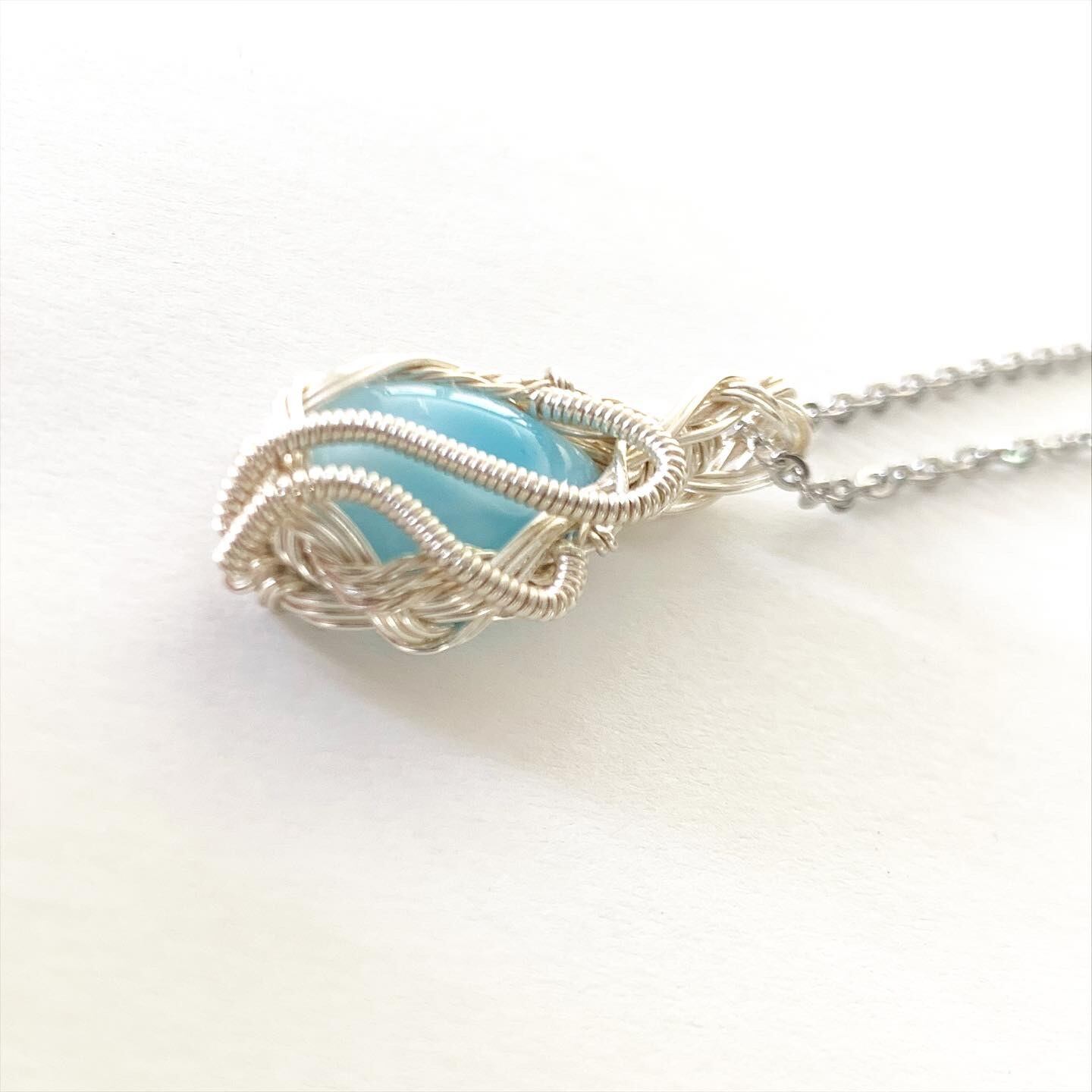 小ぶりのラリマーを使った可愛いワイヤーアートネックレスです。