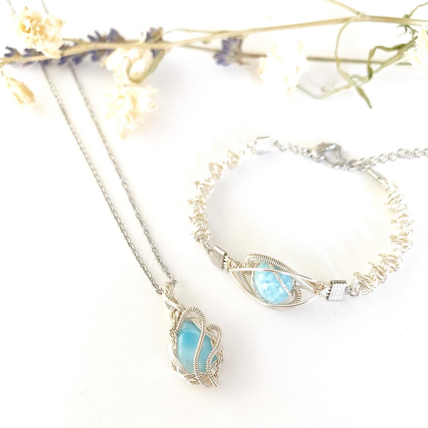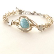 ラリマーのワイヤーアートブレスレット