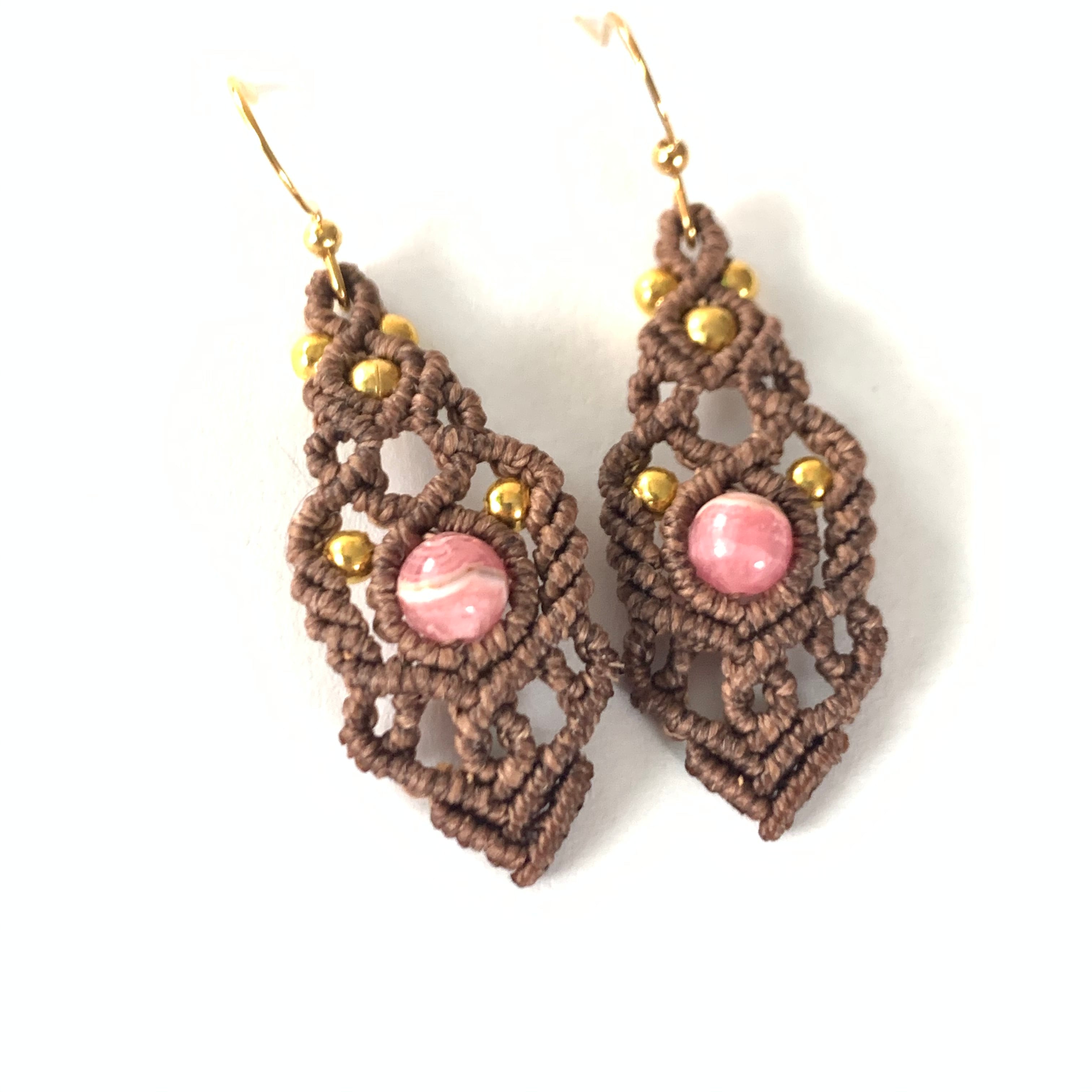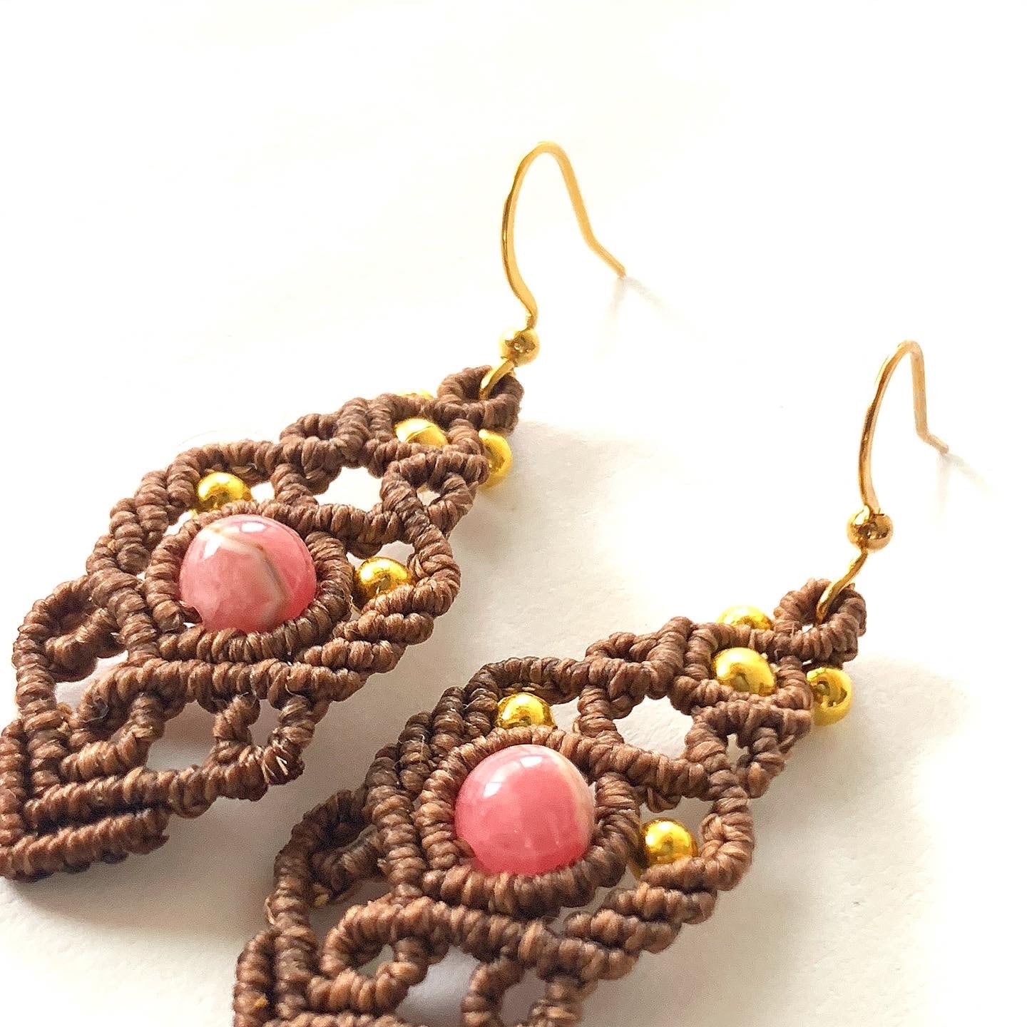 インカローズを使ったマクラメ編みピアスです。