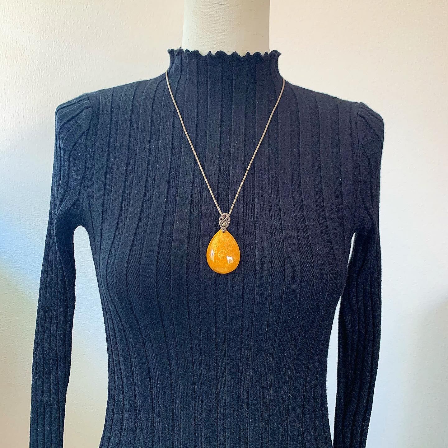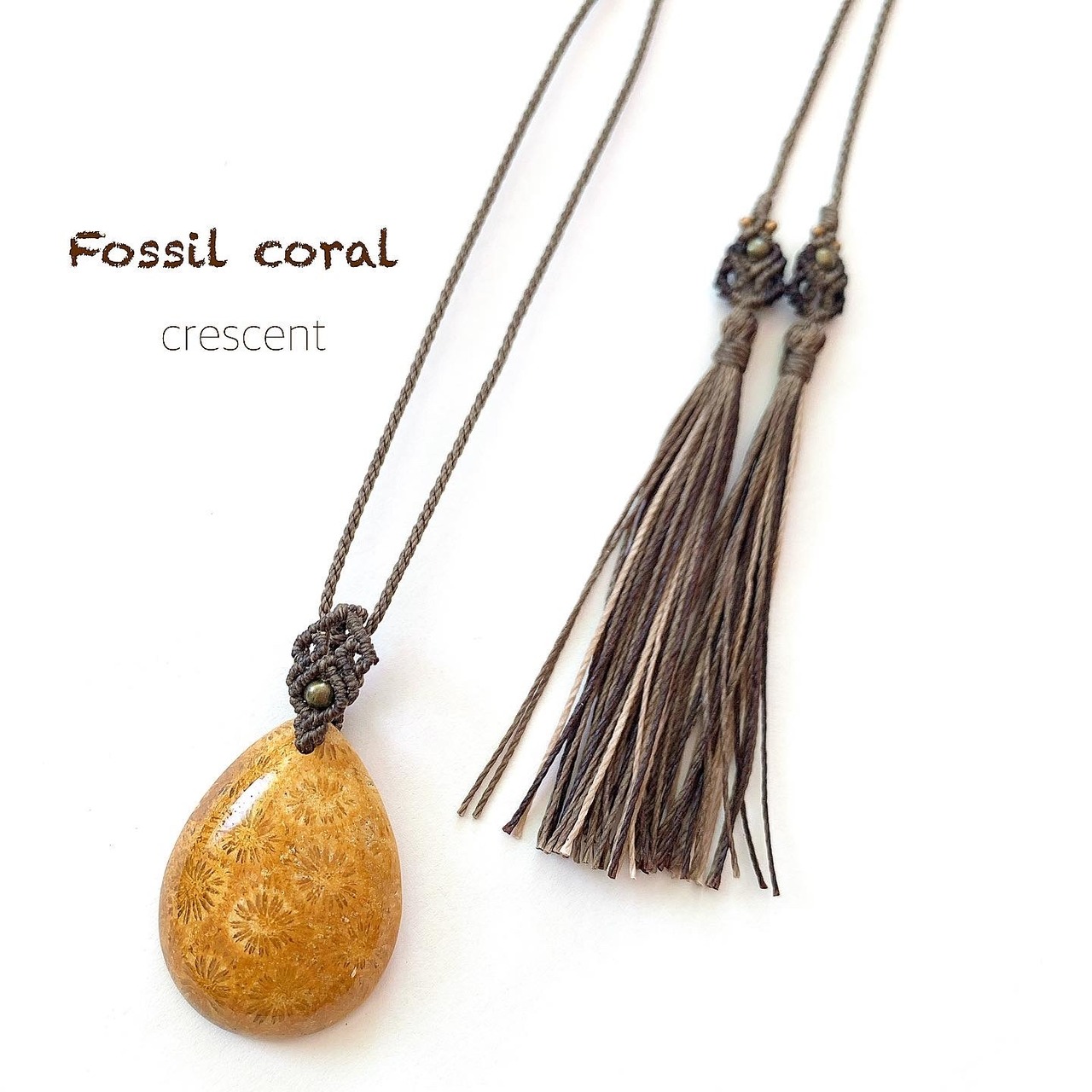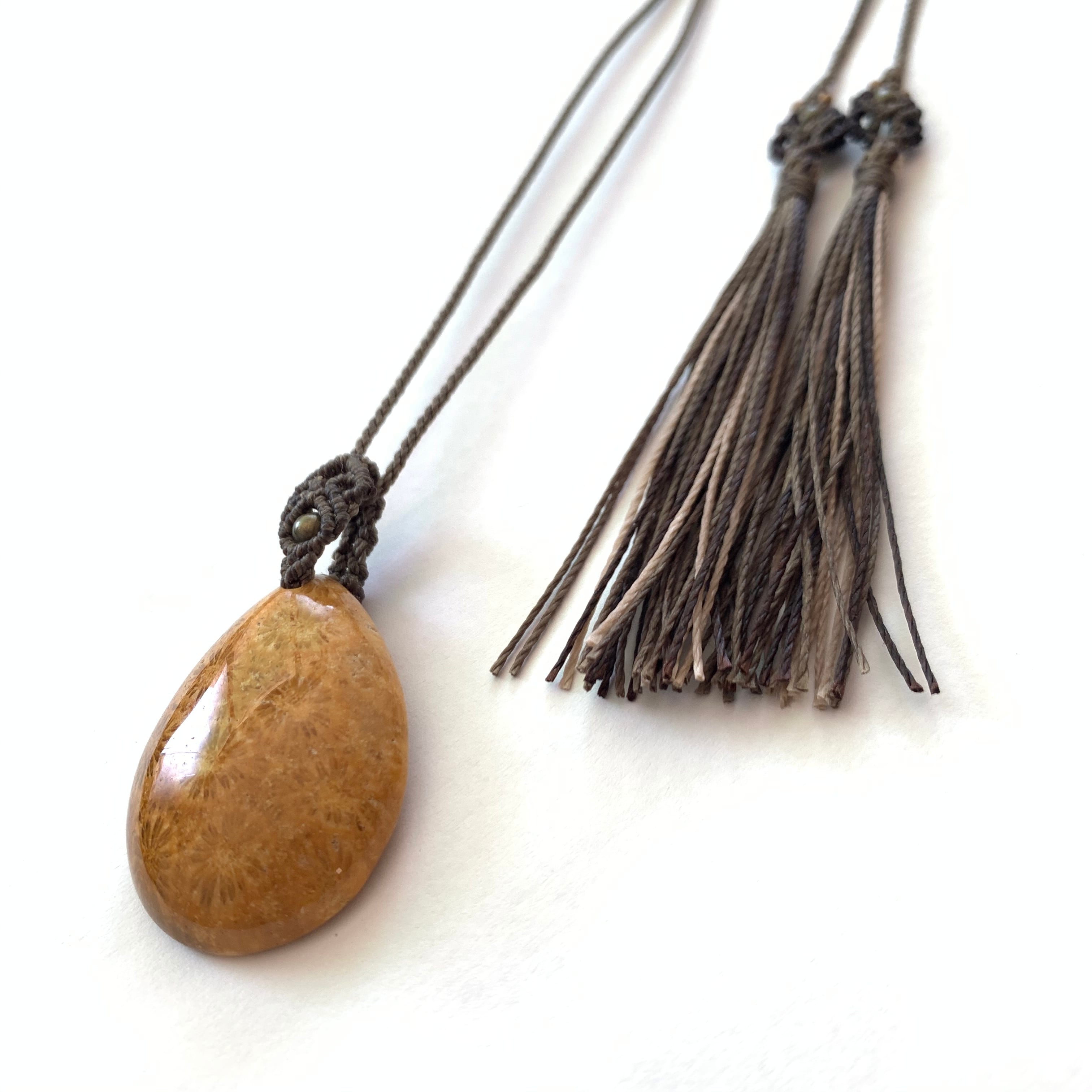 フォッシルコーラルのマクラメ編みネックレス
