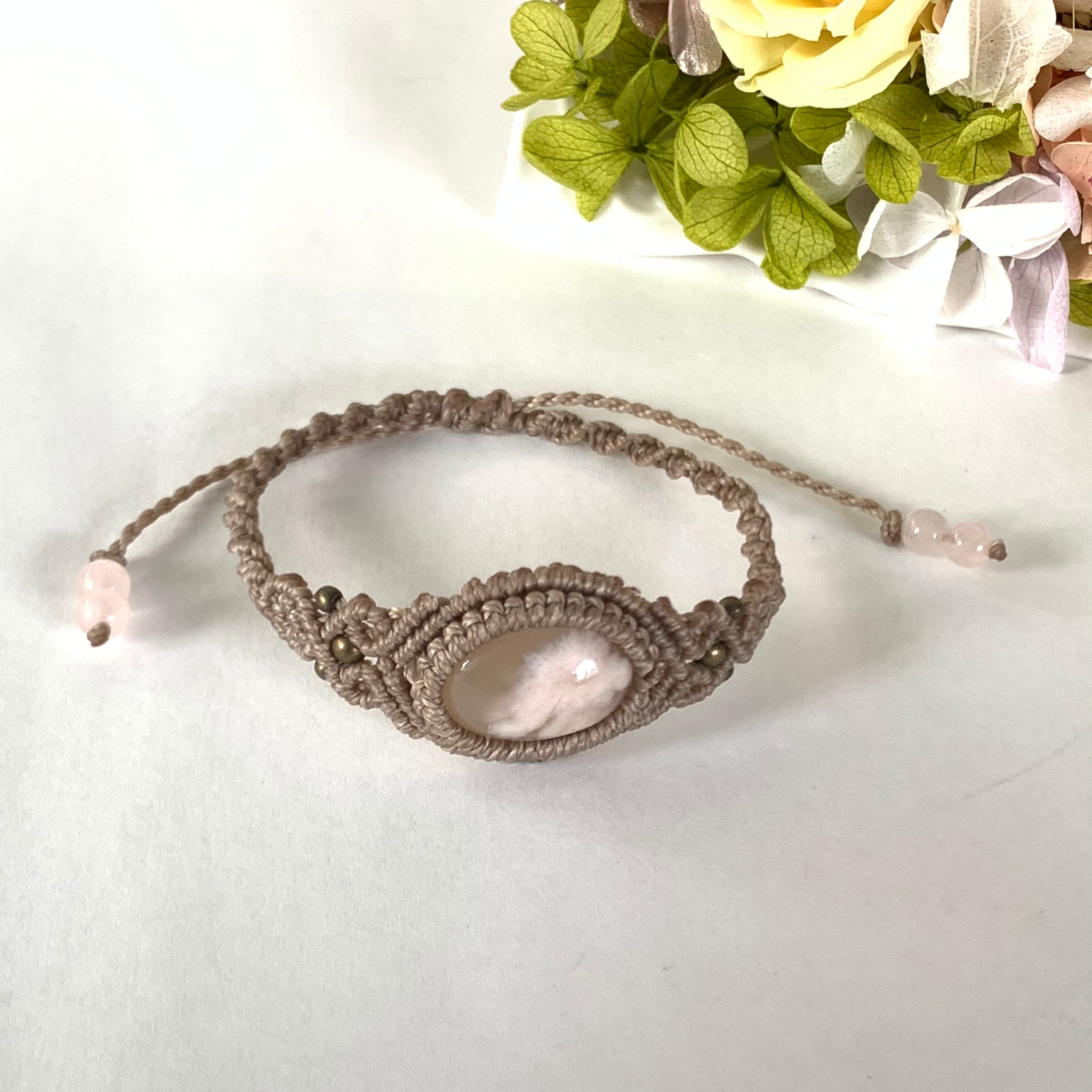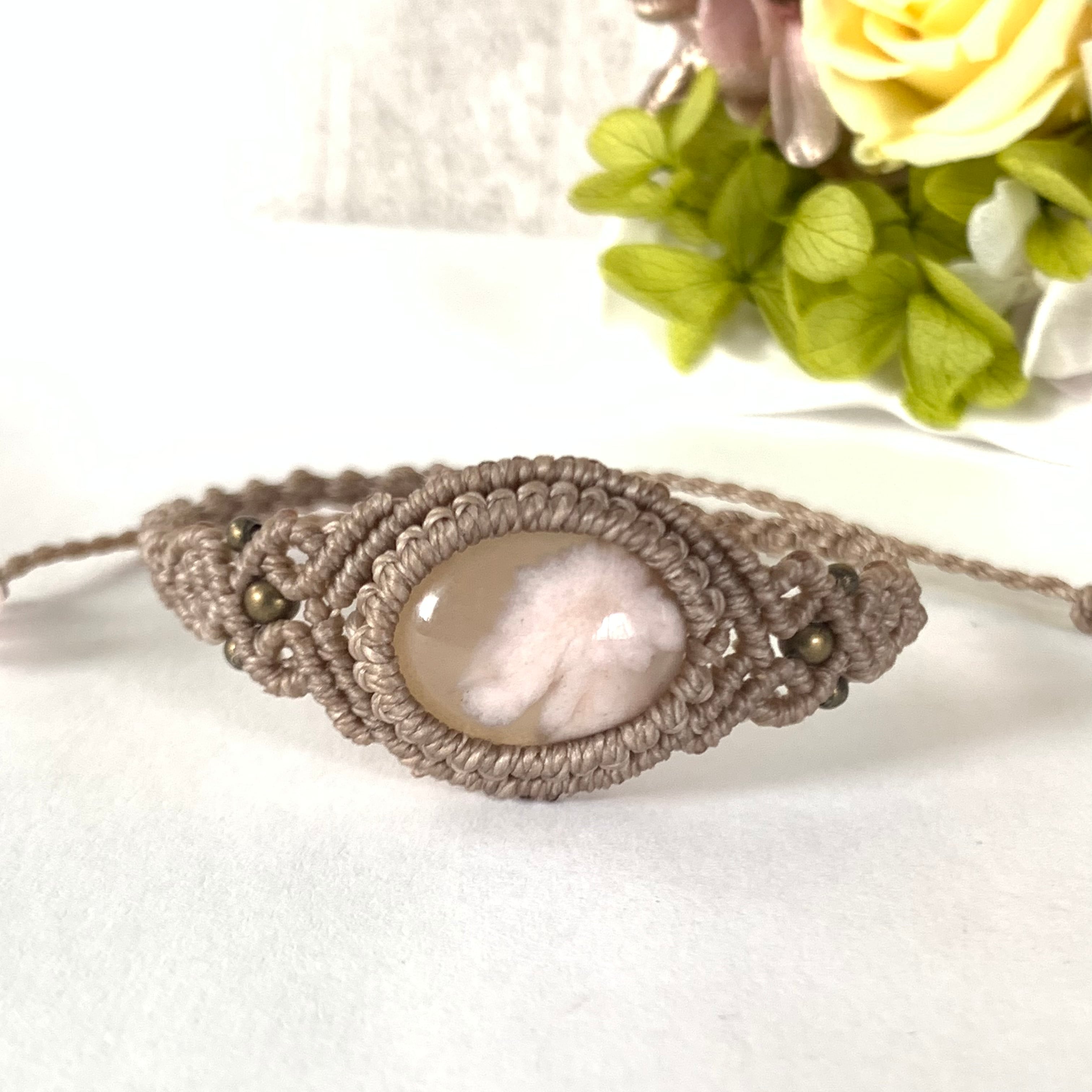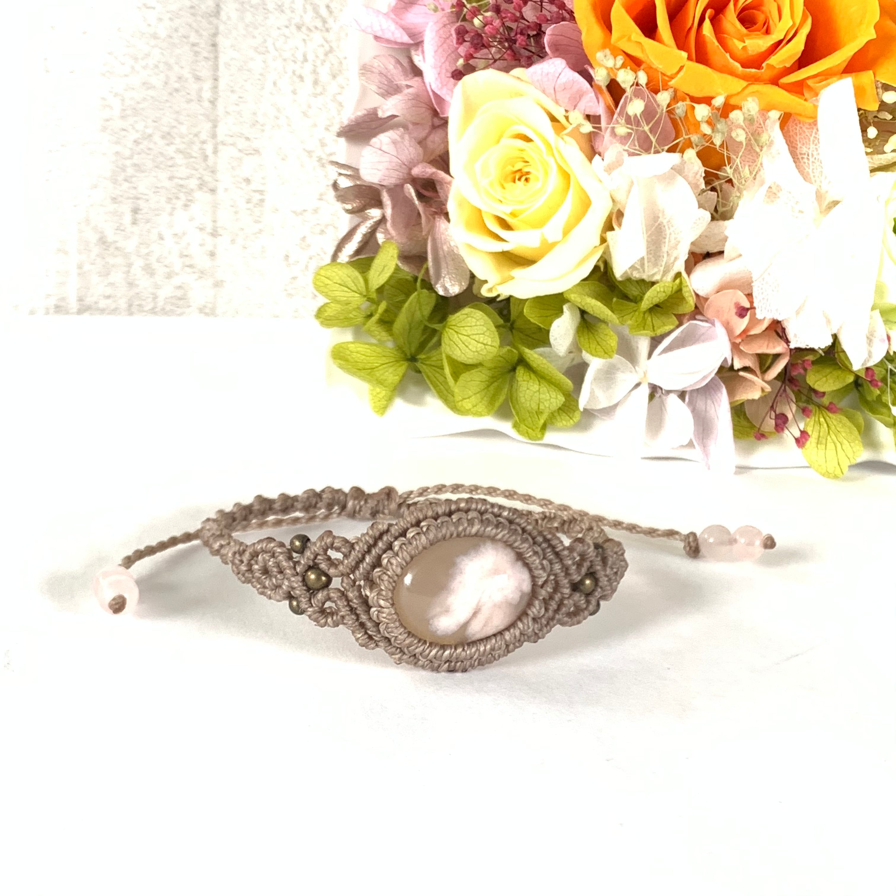 サクラアゲート(チェリーブロッサムアゲート)のマクラメ編みブレスレット