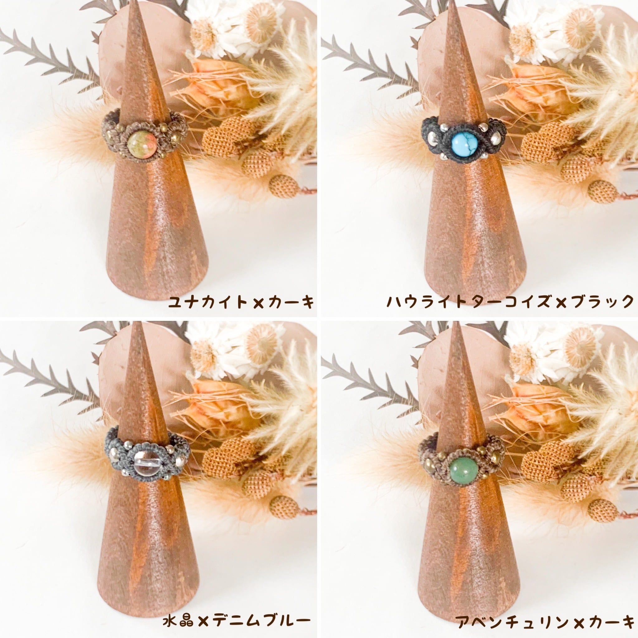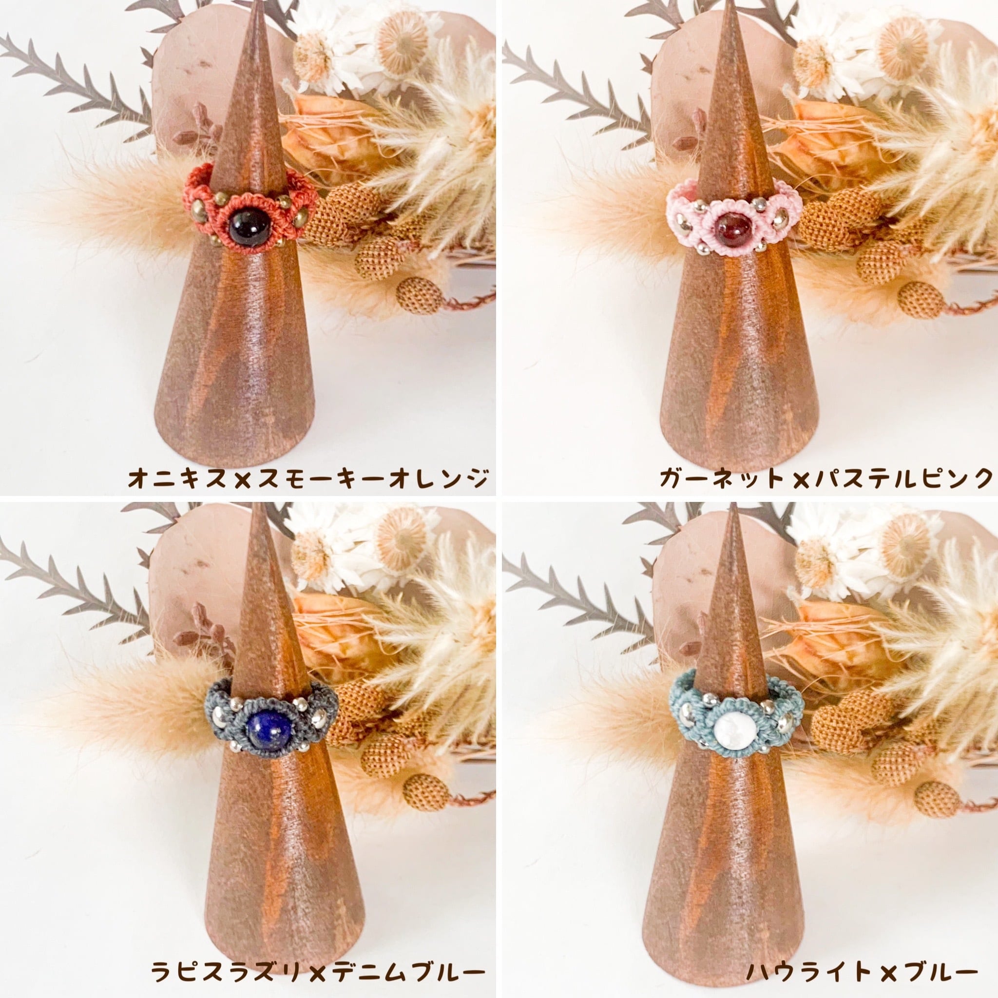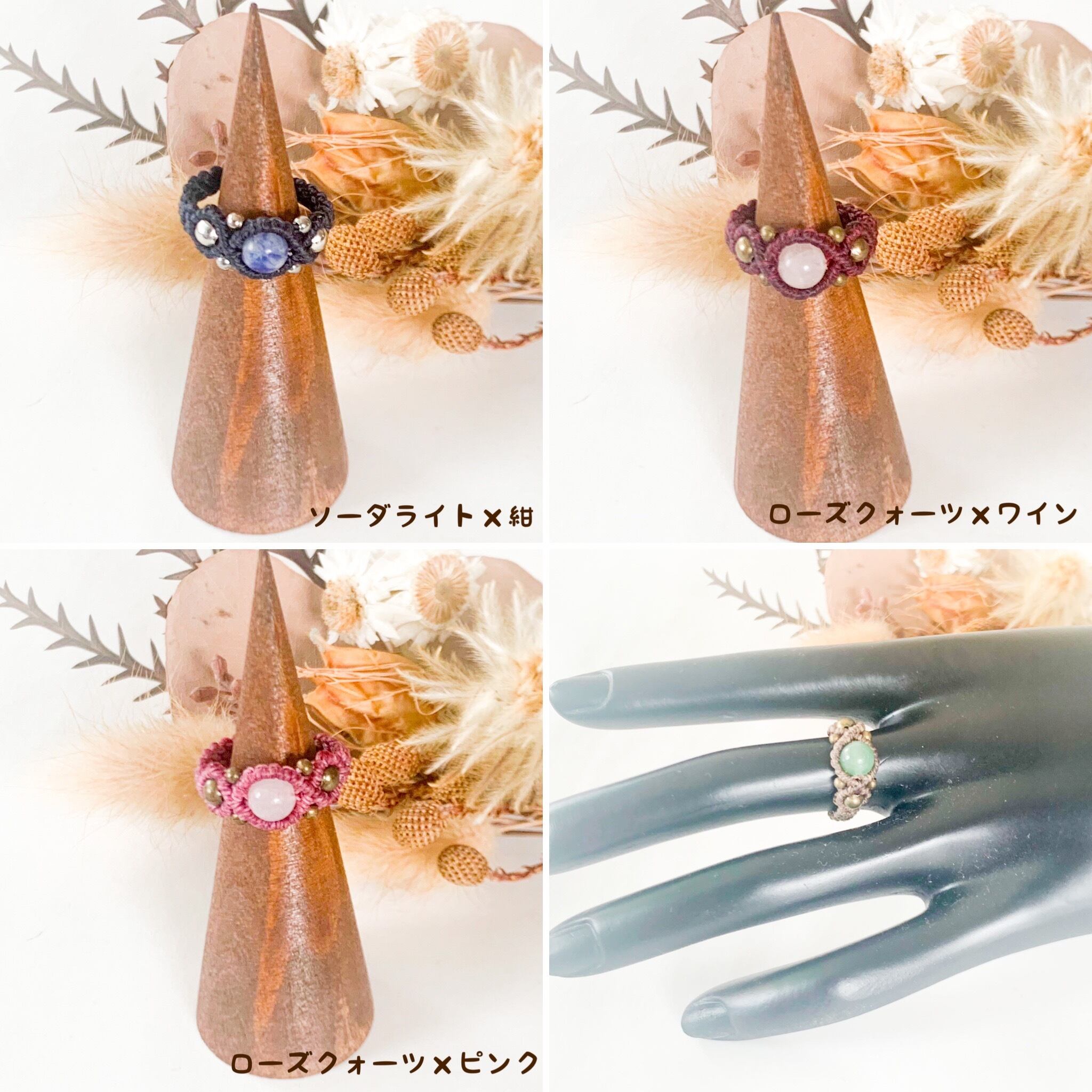 カジュアルなマクラメ編みリング全23種類です。