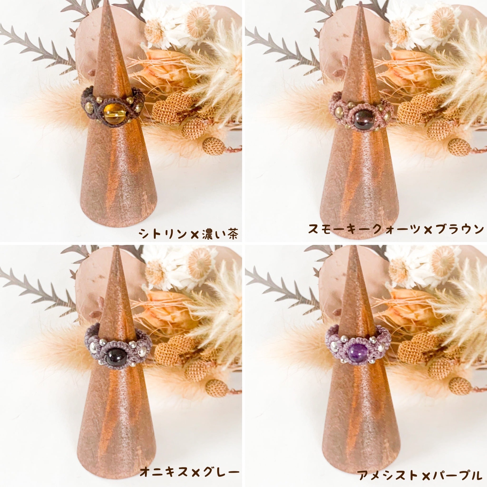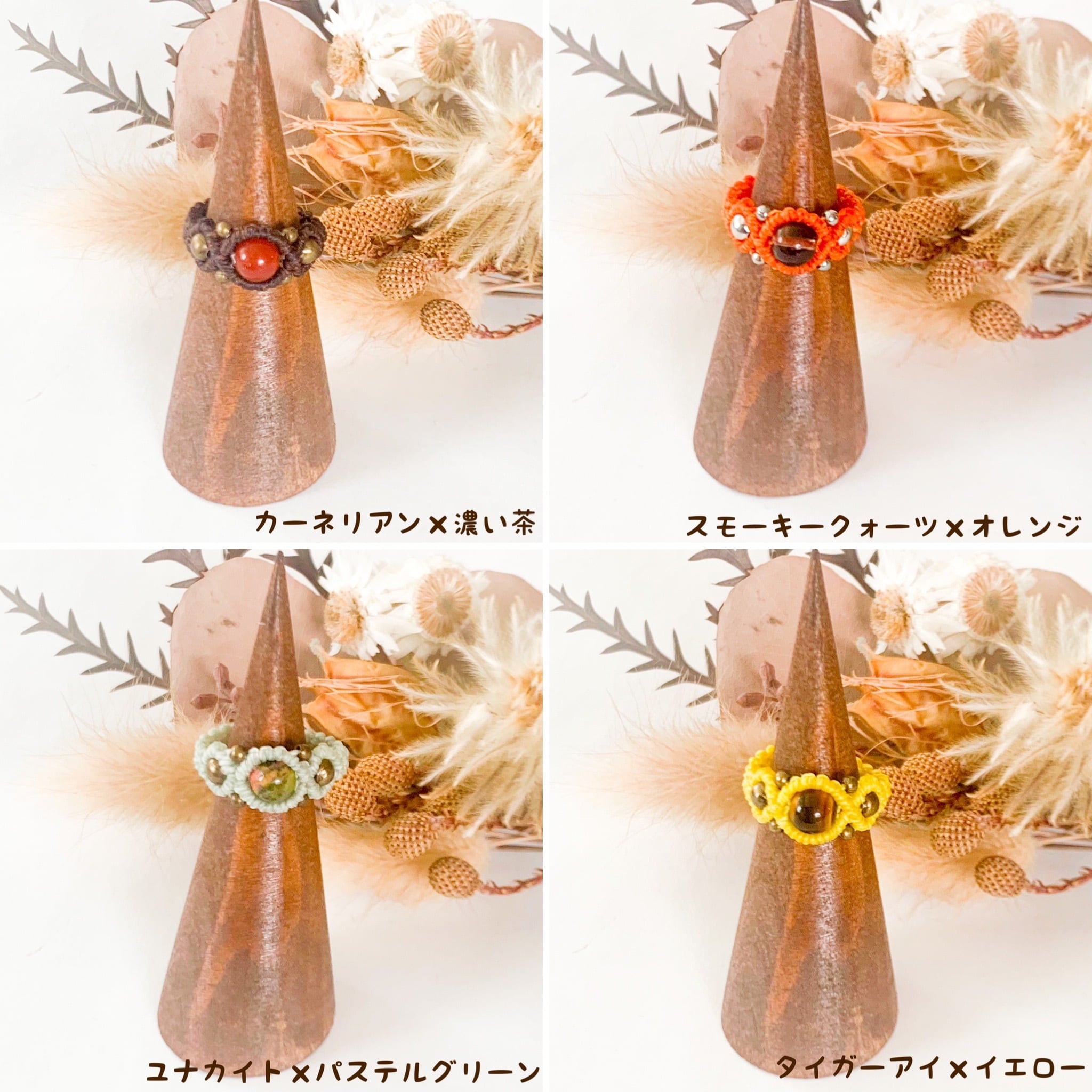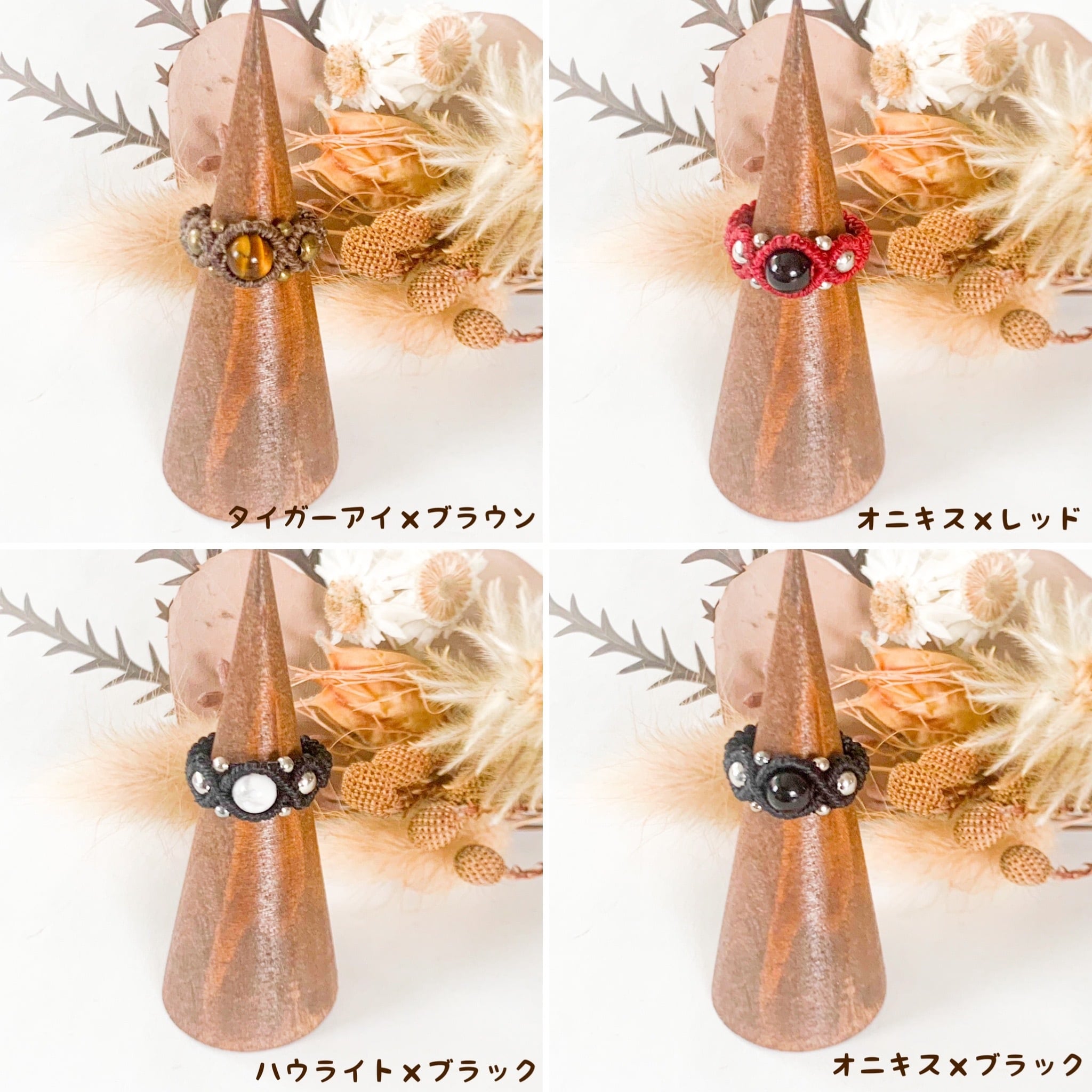 カジュアルなマクラメ編みリング全23種類です。