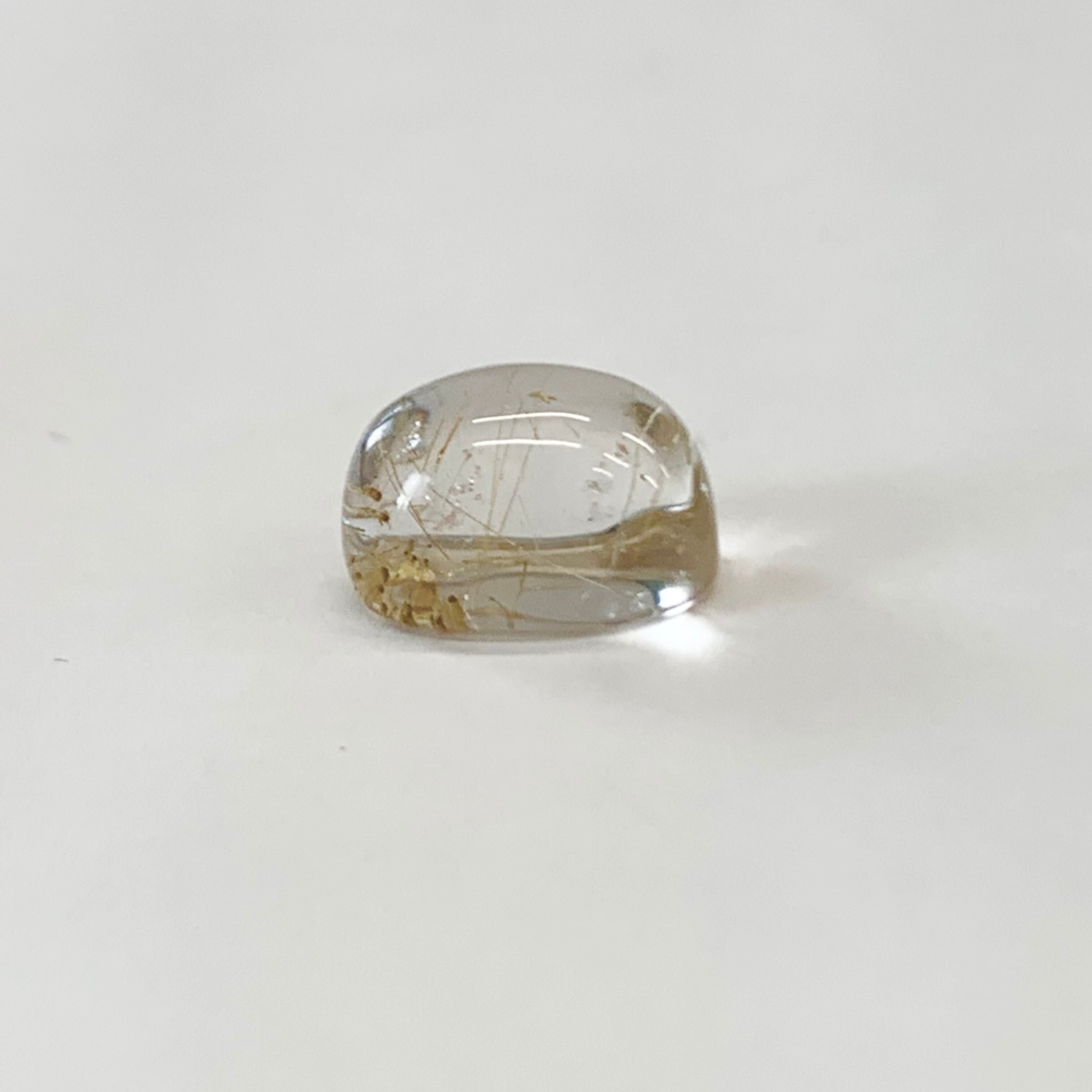 厚みのある形状にルチルを含ませた水晶のカボションです。