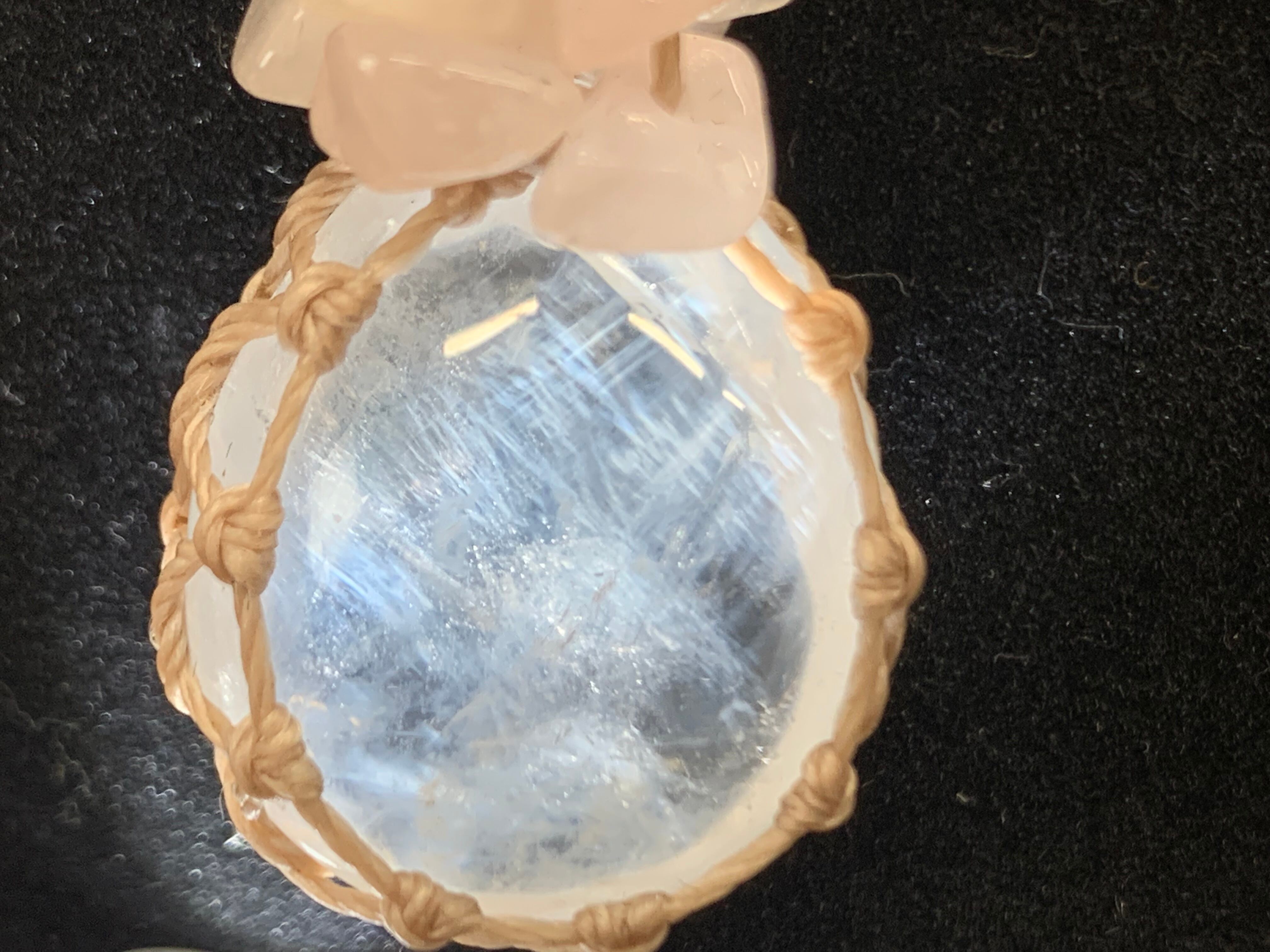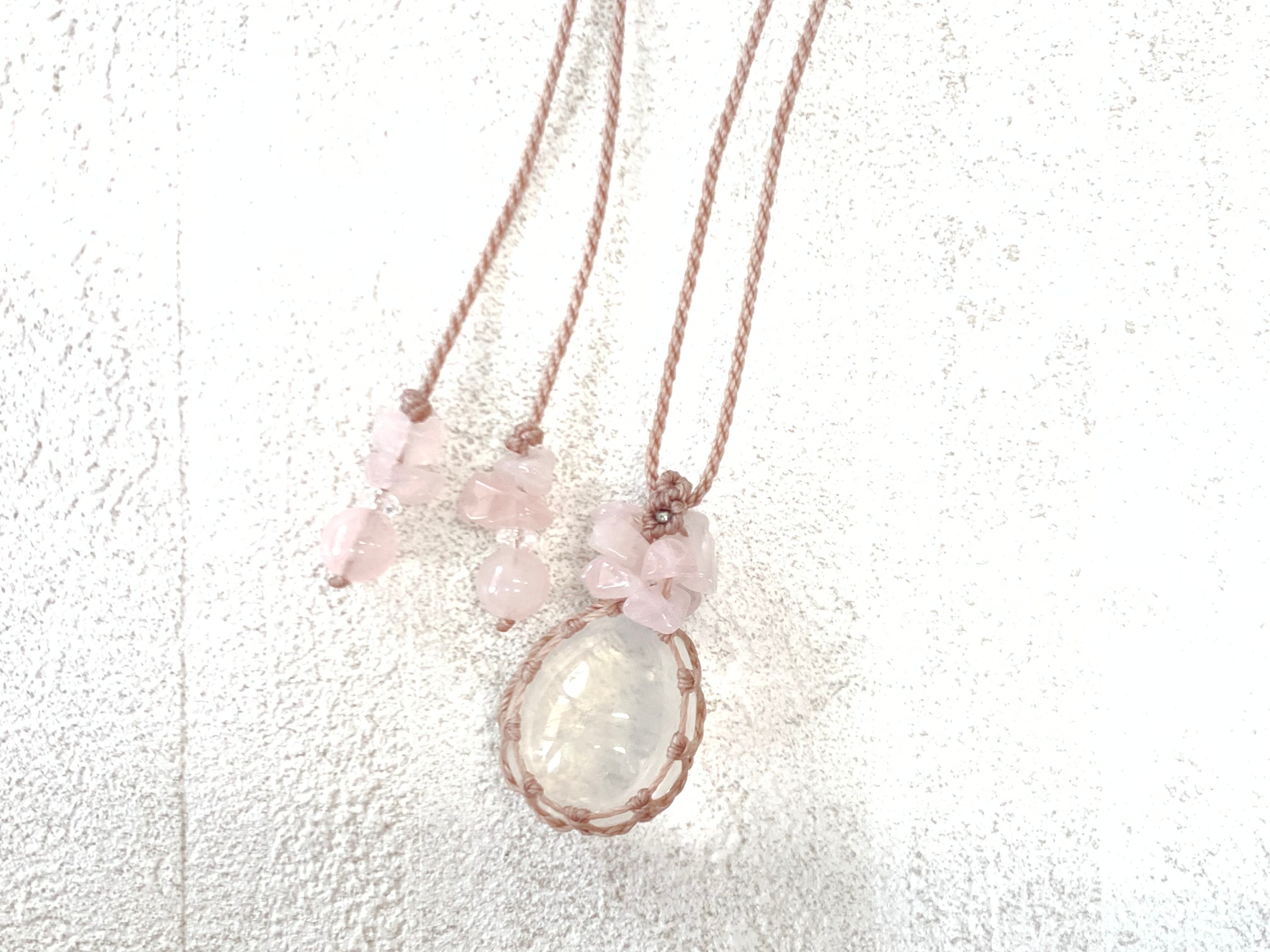 エンジェルラダークォーツとローズクォーツのマクラメ編みネックレス